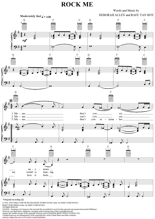 Digital Sheet Music for Rock Me by LeAnn Rimes, Deborah Allen, Rafe Van Hoy scored for Piano/Vocal/Chords; id:124279