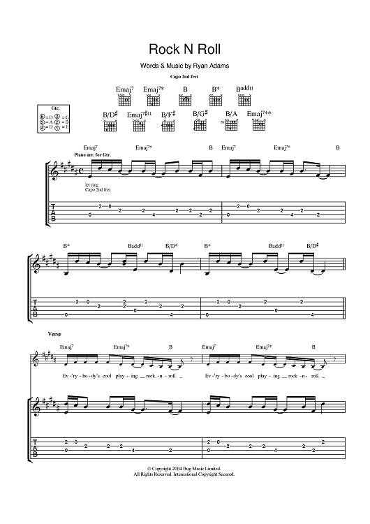 Digital Sheet Music for Rock 'N Roll by Ryan Adams scored for Guitar Tab; id:401677