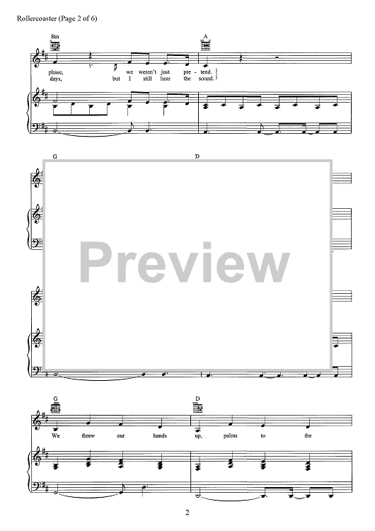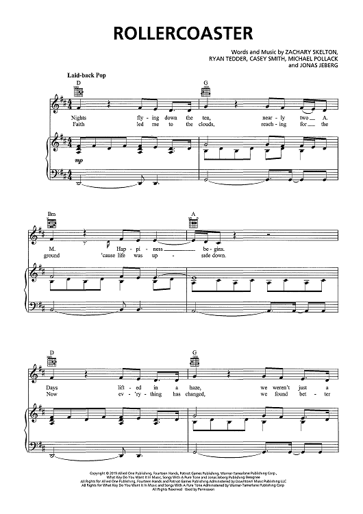 Digital Sheet Music for Rollercoaster by Ryan Tedder, Jonas Brothers, Jonas Jeberg, Michael Pollack, Zach Skelton, Casey Smith scored for Piano/Vocal/Chords; id:467871