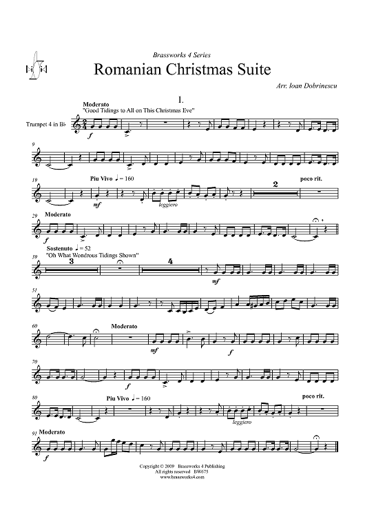 Digital Sheet Music for Romanian Christmas Suite - Trumpet 4 in B-flat by Various, Ioan Dobrinescu scored for Brass Ensemble; id:411343