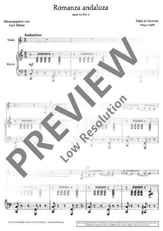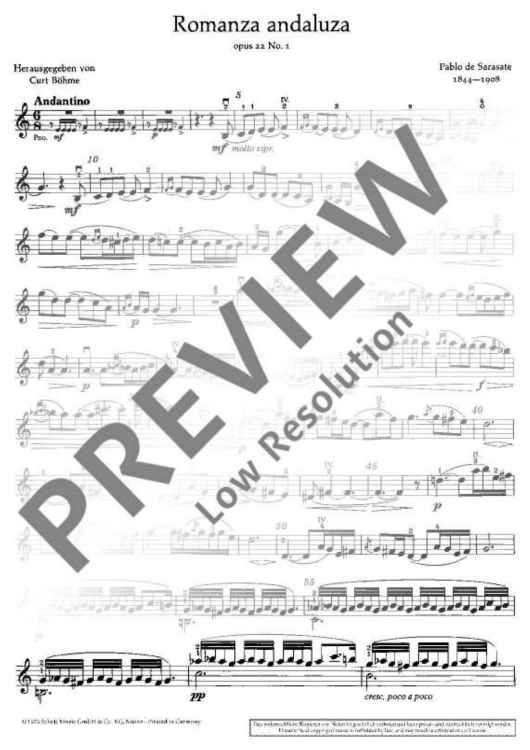 "Romanza andaluza" Sheet Music by Martín Melitón Pablo de Sarasate y Navascuez