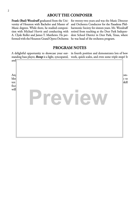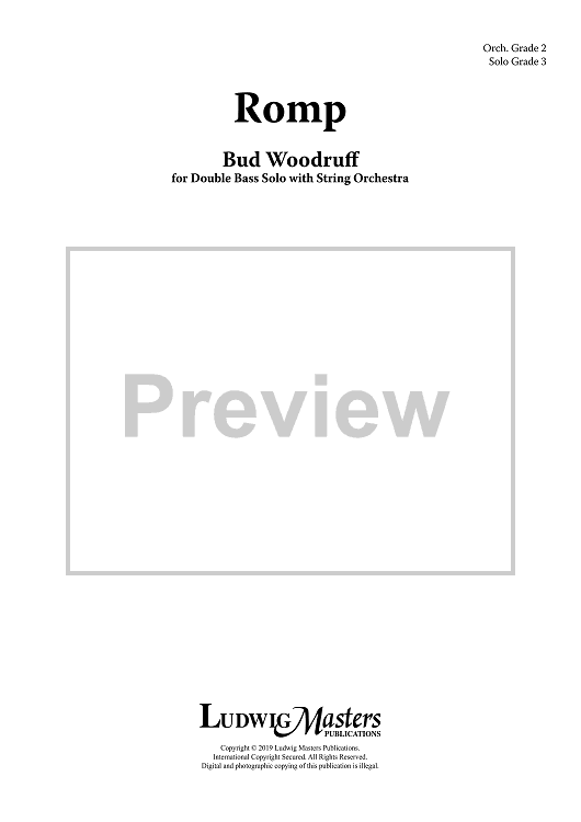 Digital Sheet Music for Romp - Full Score by Bud Woodruff scored for Double Bass Solo with String Orchestra; id:507702