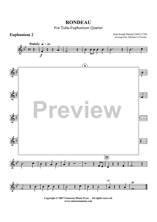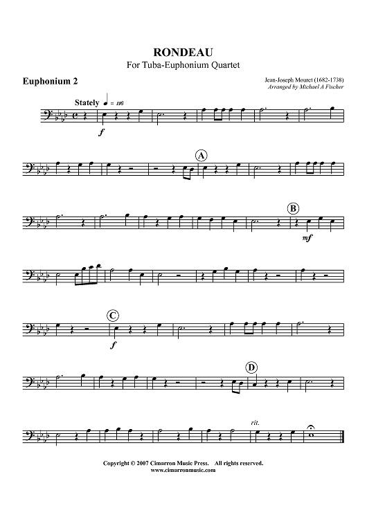 "Rondeau - For Tuba-Euphonium Quartet - Euphonium 2 BC/TC" Sheet Music by Jean-Joseph Mouret