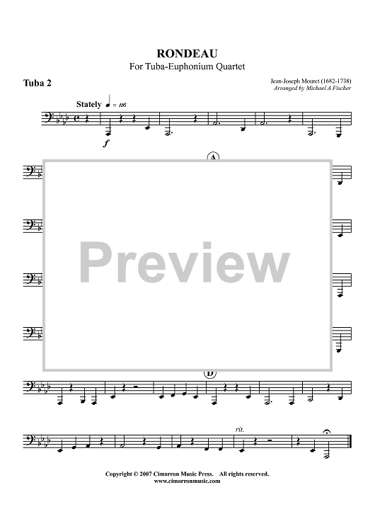 Digital Sheet Music for Rondeau - For Tuba-Euphonium Quartet - Tuba 2 by Jean-Joseph Mouret, Michael A. Fischer scored for Tuba Quartet; id:413508
