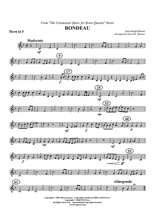 "Rondeau - Horn in F (plus optional part for Trombone)" Sheet Music by Jean-Joseph Mouret