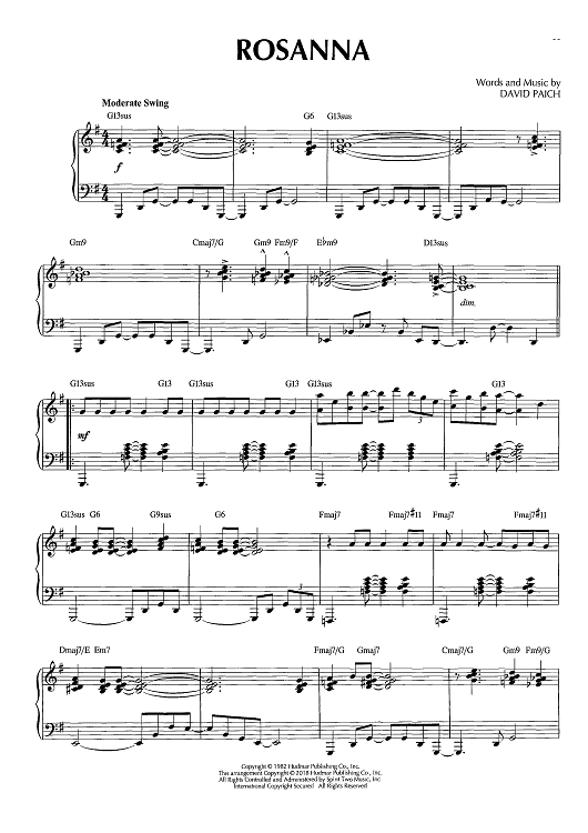 Digital Sheet Music for Rosanna by David Paich, Brent Edstrom scored for Piano Solo; id:466381