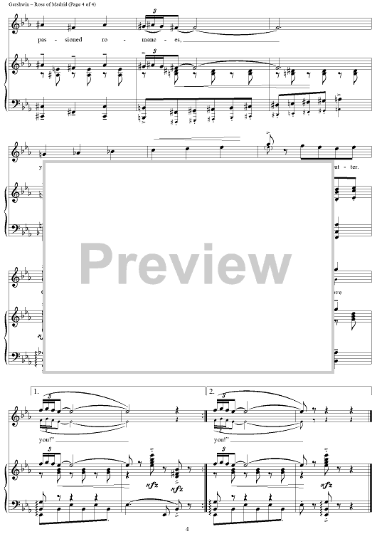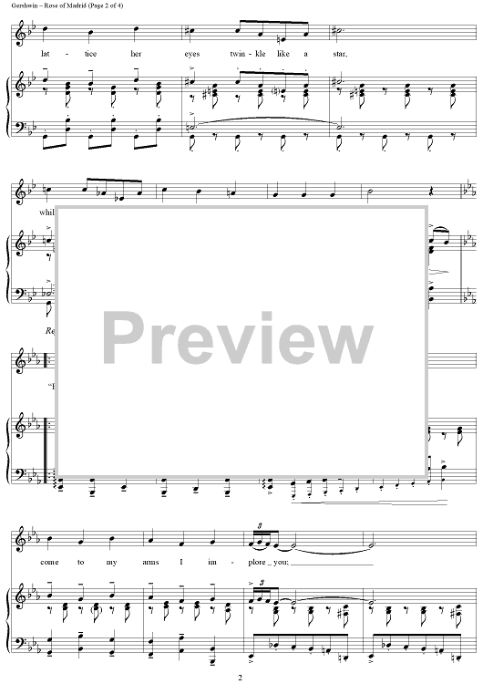 Digital Sheet Music for Rose of Madrid by George Gershwin, Buddy DeSylva scored for Piano/Vocal/Chords; id:312638