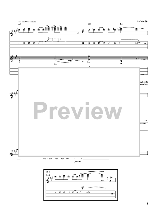 "Runnin' With The Devil" Sheet Music by David Lee Roth
