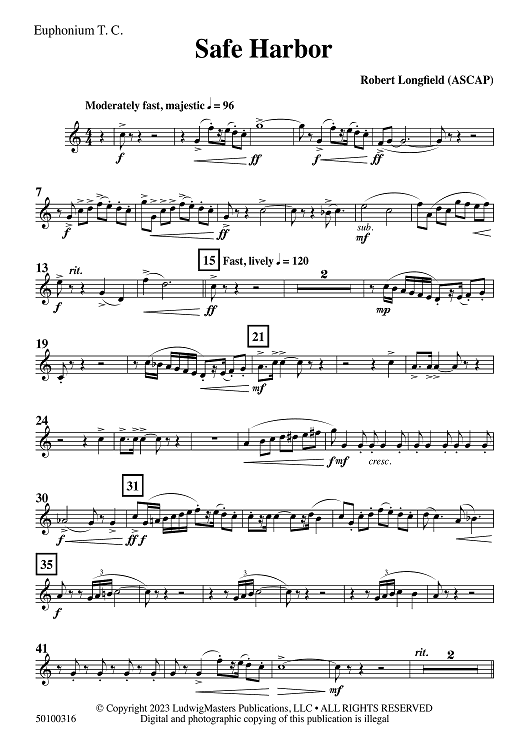 Digital Sheet Music for Safe Harbor - Euphonium TC by Robert Longfield scored for Concert Band; id:509709