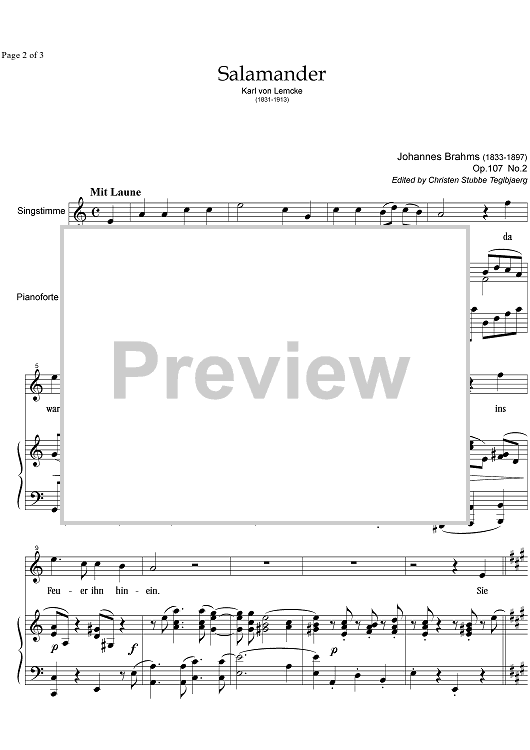 Digital Sheet Music for Salamander Op.107 No. 2 by , Johannes Brahms scored for Soprano or Tenor/Piano; id:331305