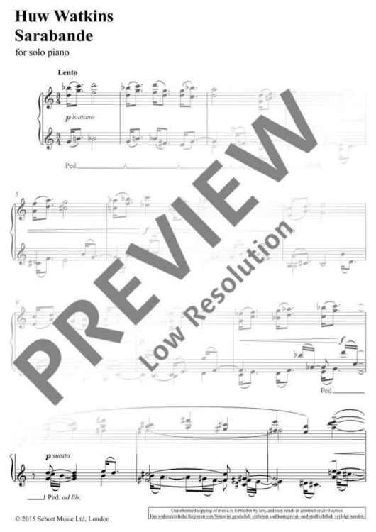 "Sarabande" Sheet Music by Huw Watkins