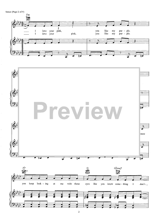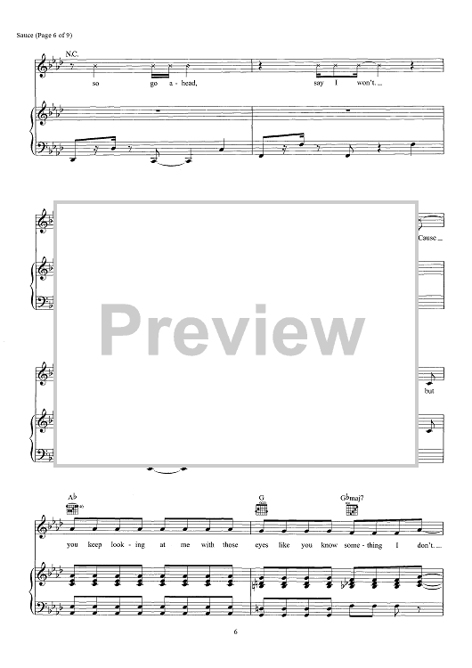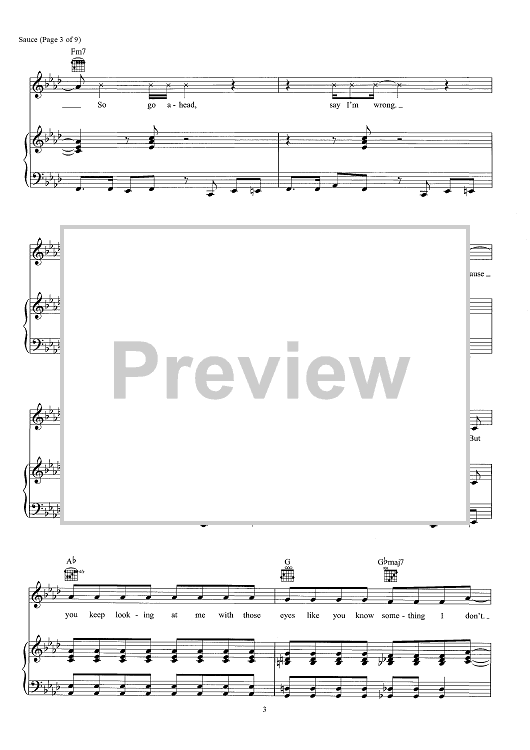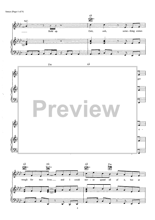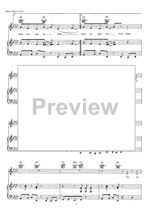 Digital Sheet Music for Sauce by Nate Hills, Elliott Ives, Timothy Mosely, Justin Timberlake scored for Piano/Vocal/Chords; id:466455