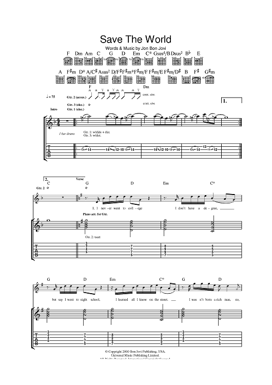 Digital Sheet Music for Save The World by Bon Jovi, Jon Bon Jovi scored for Guitar Tab; id:393177