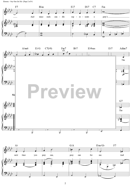 Digital Sheet Music for Say One for Me by Sammy Cahn, Jimmy Van Heusen scored for Piano/Vocal/Chords; id:305471