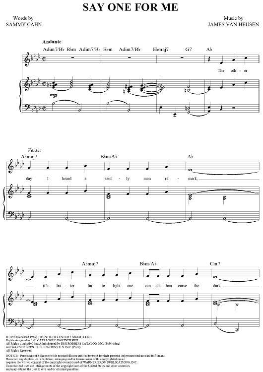 "Say One for Me" Sheet Music by Jimmy Van Heusen