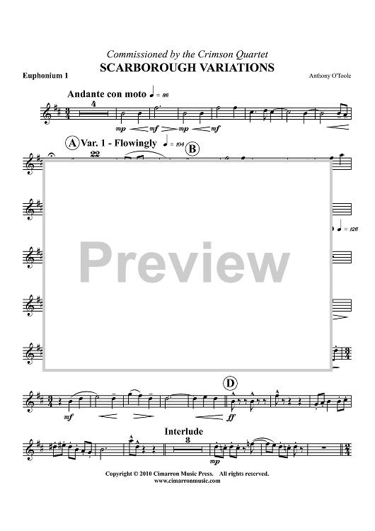"Scarborough Variations - Euphonium 1" Sheet Music by Anthony O'Toole