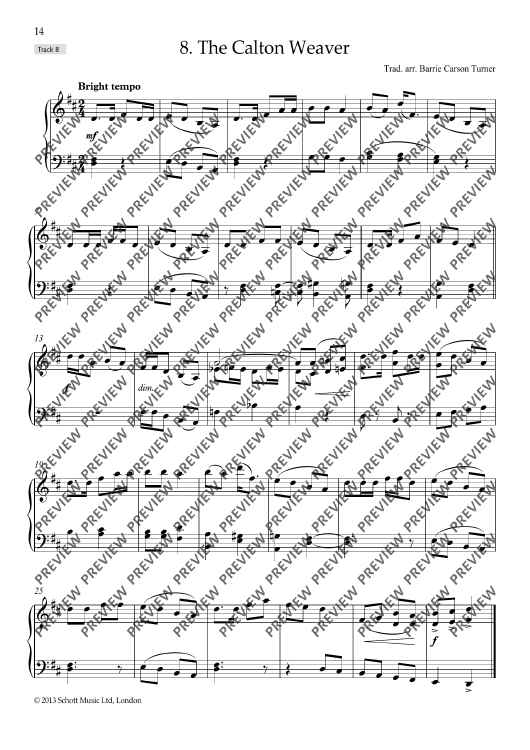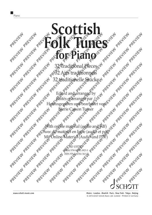 Scottish Folk Tunes presents a collection of beautiful pieces for solo piano drawn from the rich tradition of Scottish folk music. Experienced author and arranger Barrie Carson-Turner provides notes on all of the pieces, explaining their background and history. The volume is accompanied by a recording of all tunes for download. German and French translations of all texts are available as pdf downloads from the Schott Music website. Suitable for players of grades 3-8. Part of the best selling World Music series, which also includes music from England, Ireland, Scotland, Eastern Europe, America, Argentina, India, China and Korea.