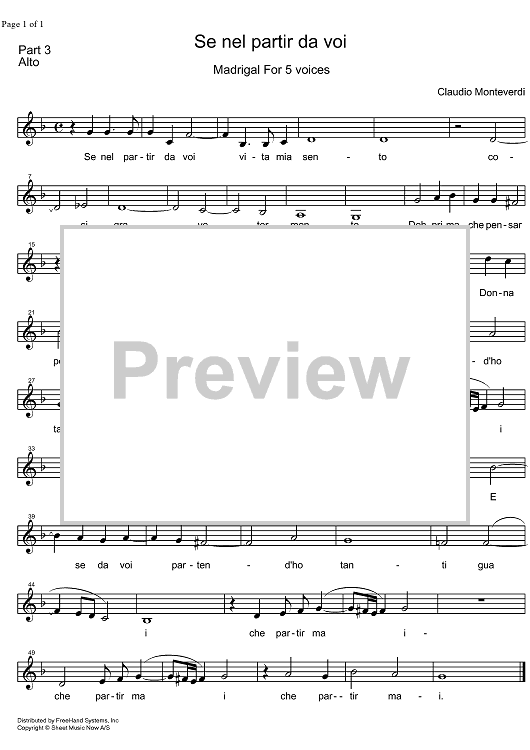 "Se nel partir de voi - Alto" Sheet Music by Claudio Monteverdi