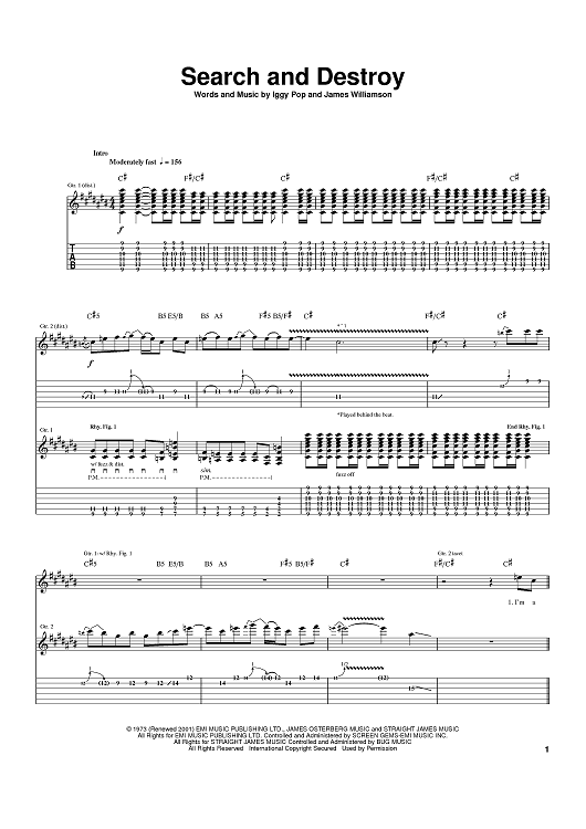 Digital Sheet Music for Search And Destroy by Iggy Pop, Red Hot Chili Peppers, James Williamson scored for Guitar Tab; id:401456