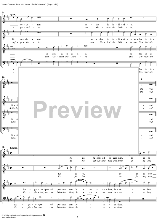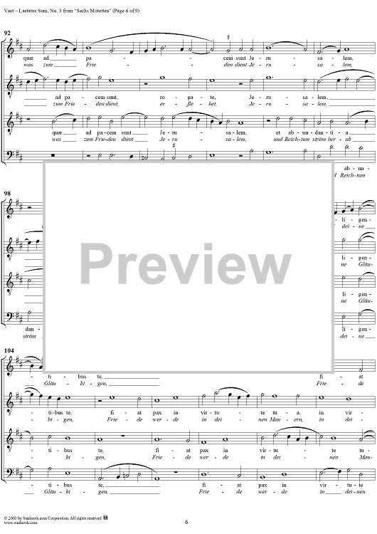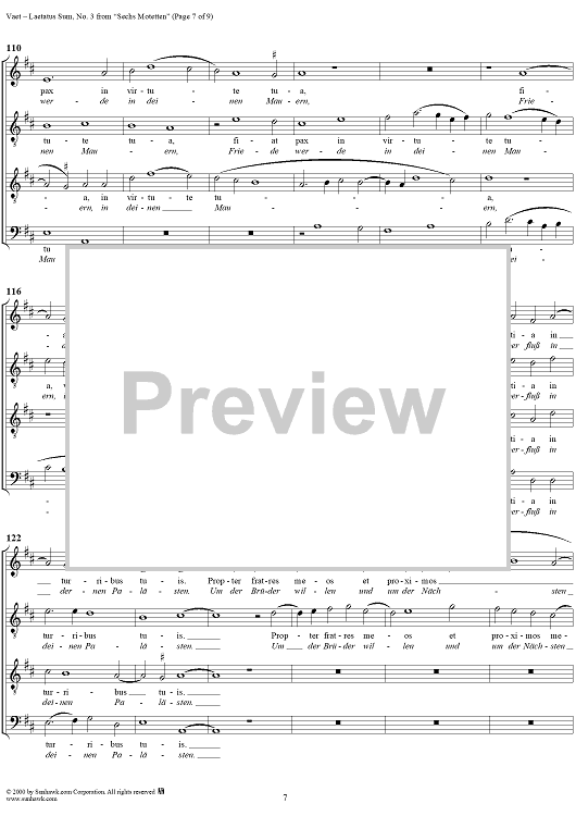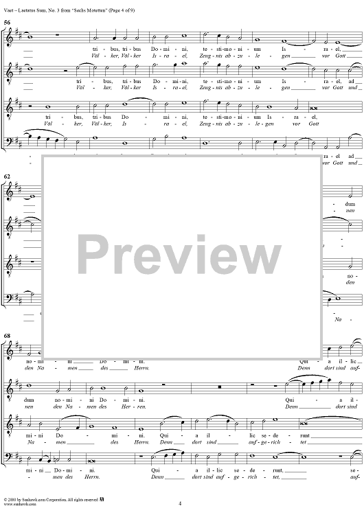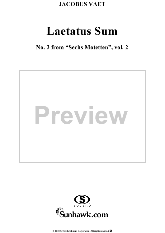 Digital Sheet Music for Sechs Motetten, No. 3: Laetatus Sum by Jacobus Vaet scored for Mixed Chorus; id:249578