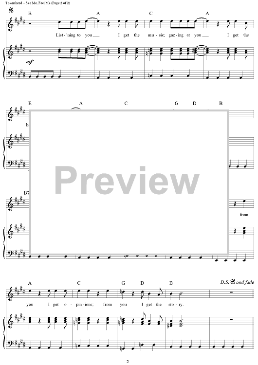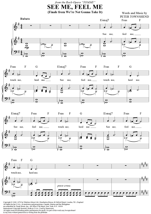 "See Me, Feel Me (Finale from We're Not Gonna Take It)" Sheet Music by The Who
