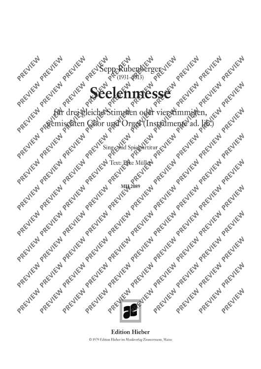 "Seelenmesse - Vocal And Performing Score" Sheet Music by Sepp Rubenberger