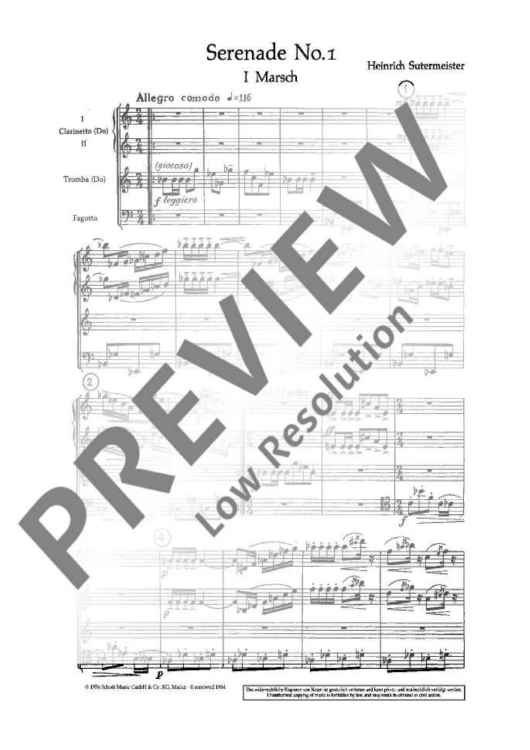 Digital Sheet Music for Serenade No. 1 - Score and Parts by Heinrich Sutermeister scored for 2 Clarinets In C, Trumpet In C And Bassoon; id:486258