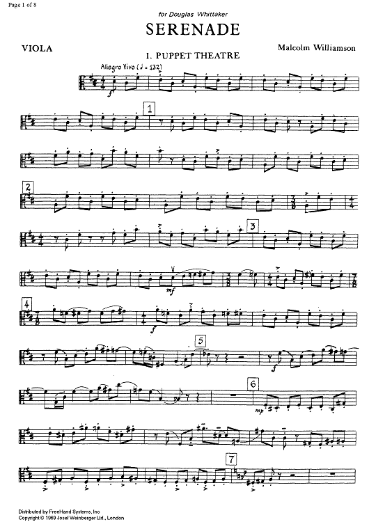 "Serenade - Viola" Sheet Music by Malcolm Williamson