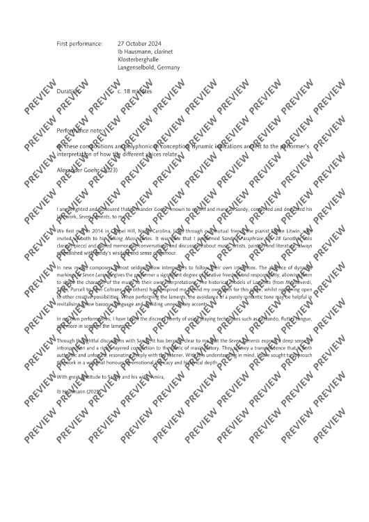 Digital Sheet Music for Seven Laments - Score by Alexander Goehr scored for Clarinet In A; id:510740