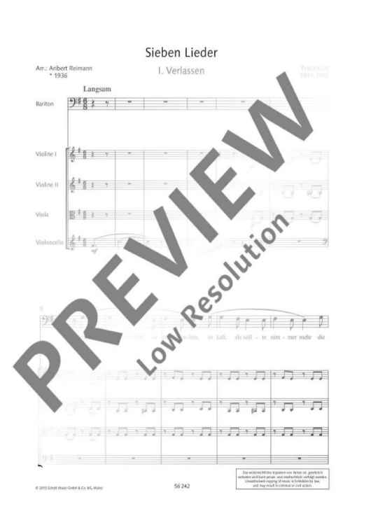 Aribert Reimann’s idea to arrange the lieder of Franz Liszt for baritone and string quartet goes back to his collaboration with Dietrich Fischer-Dieskau, recording some of these lieder for the German broadcasting company formerly known as Sender Freies Berlin (SFB). Since then, Reimann has continued to be fascinated by Liszt’s thrilling harmony and unconventional treatment of the voice. Here, he has compiled a cycle containing seven lieder from Liszt’s middle and late periods, arranged so that each song is the logical continuation of its predecessor. Liszt’s fundamental harmony has been retained, but the registers have been altered to such an extent that they appear in a completely new light.