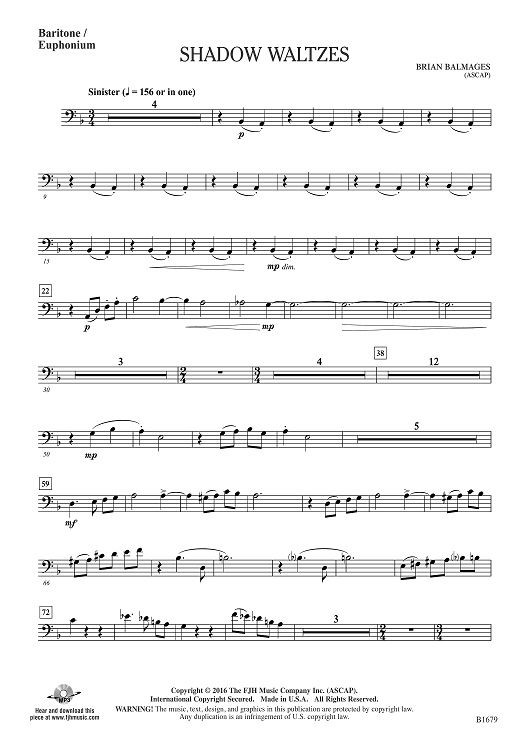 Digital Sheet Music for Shadow Waltzes - Baritone / Euphonium by Brian Balmages scored for Concert Band; id:510217