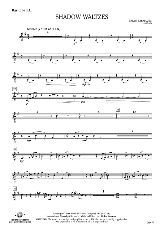 Digital Sheet Music for Shadow Waltzes - Baritone TC by Brian Balmages scored for Concert Band; id:510218