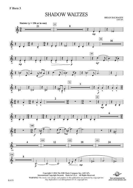 Digital Sheet Music for Shadow Waltzes - F Horn 3 by Brian Balmages scored for Concert Band; id:510211