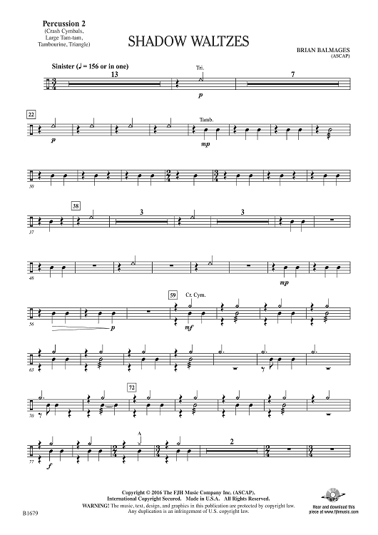 Digital Sheet Music for Shadow Waltzes - Percussion 2 by Brian Balmages scored for Concert Band; id:510225