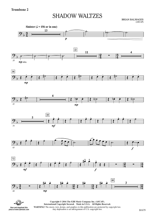 "Shadow Waltzes - Trombone 2" Sheet Music by Brian Balmages