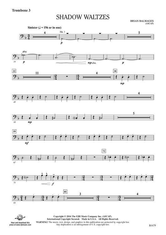 Digital Sheet Music for Shadow Waltzes - Trombone 3 by Brian Balmages scored for Concert Band; id:510215