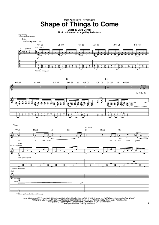 Digital Sheet Music for Shape Of Things To Come by Audioslave, Chris Cornell scored for Guitar Tab; id:395497
