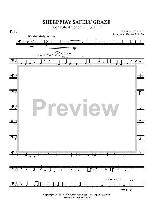 Digital Sheet Music for Sheep May Safely Graze - For Tuba-Euphonium Quartet - Tuba 1 by Johann Sebastian Bach, Michael A. Fischer scored for Tuba Quartet; id:413513