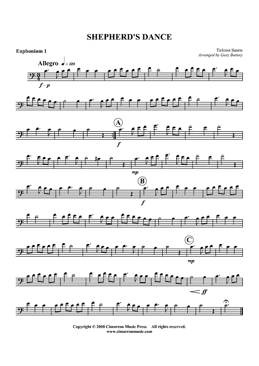 "Shepherd's Dance - Euphonium 1 BC/TC" Sheet Music by Tielman Susato