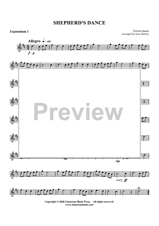 Digital Sheet Music for Shepherd's Dance - Euphonium 1 BC/TC by Gary Buttery, Tielman Susato scored for Tuba Quartet; id:416059