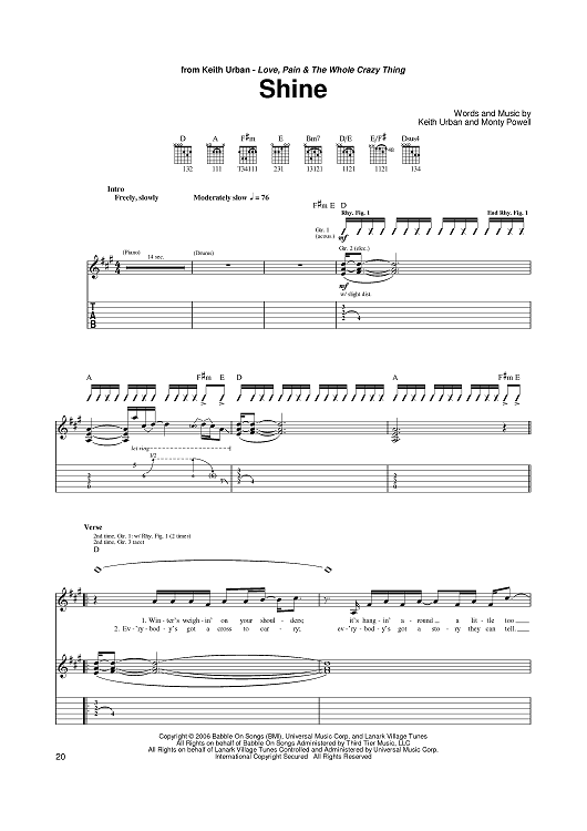Digital Sheet Music for Shine by Monty Powell, Keith Urban scored for Guitar Tab; id:399383