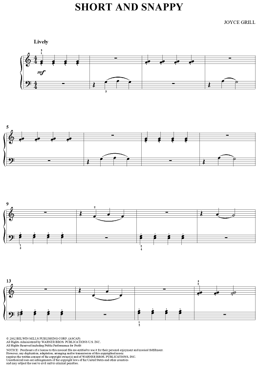 Digital Sheet Music for Short and Snappy by Joyce Grill scored for Easy Piano; id:287275