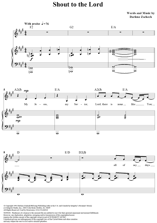 "Shout to the Lord" Sheet Music by Darlene Zschech