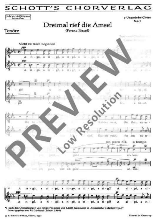 Digital Sheet Music for Sieben ungarische Chöre nach Volksliedern - Tenor I / Ii by Cesar Bresgen scored for Men's Choir (ttbb); id:488660