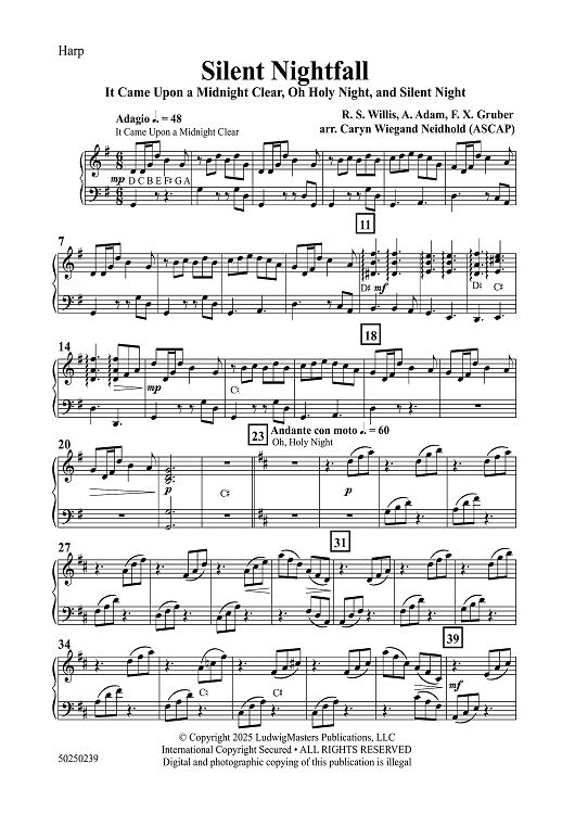 Digital Sheet Music for Silent Nightfall - Harp by Franz Xaver Gruber, Richard Storrs Willis, Adolphe Adam, Caryn Wiegand Neidhold scored for Orchestra; id:508398
