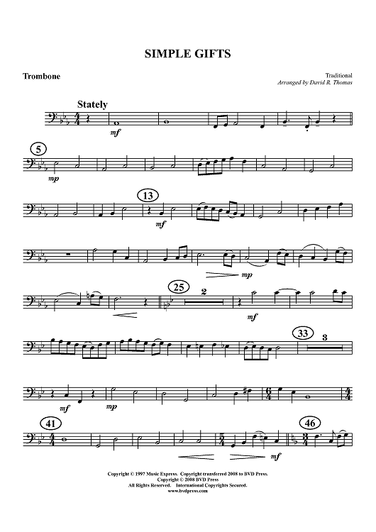 "Simple Gifts - Trombone" Sheet Music by Traditional