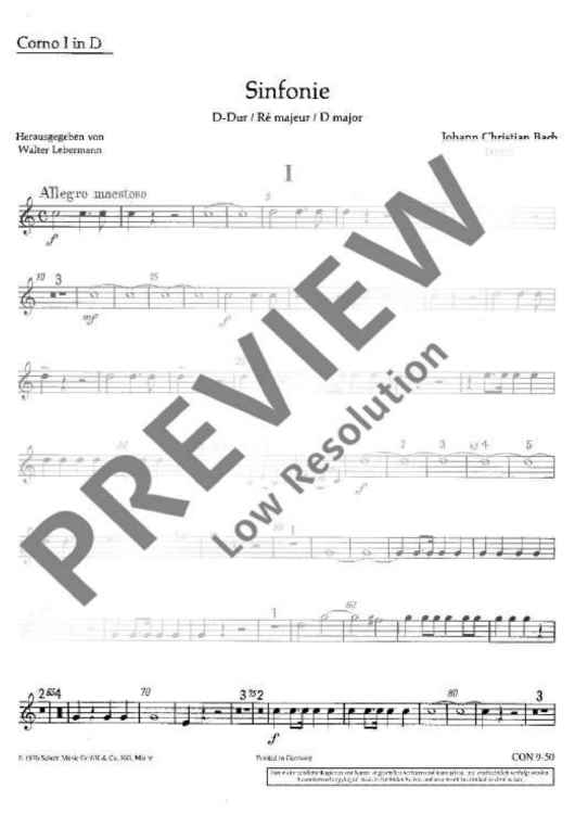 Digital Sheet Music for Sinfonie D major - Set of Parts by Johann Christian Bach scored for Orchestra; id:487548