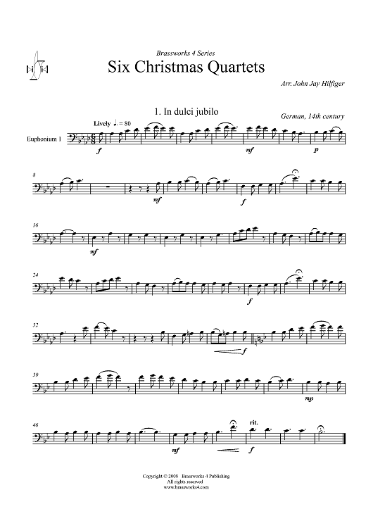 Digital Sheet Music for Six Christmas Quartets - Euphonium 1 by Various, John Jay Hilfiger scored for Tuba Quartet; id:410787