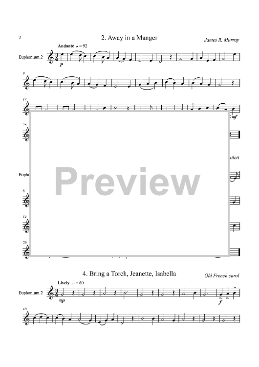 "Six Christmas Quartets - Euphonium 2 TC" Sheet Music by Various