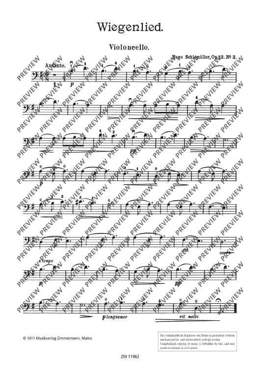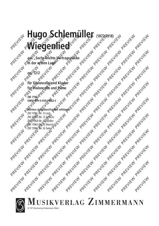 Digital Sheet Music for Six Easy Performance Pieces by Hugo Schlemueller scored for Cello And Piano; id:504907